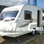 End kitchen area with a Thetford oven/grill, 3 burner gas hob, Thetford fridge with freezer compartment and sink with drainer