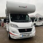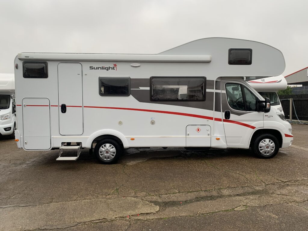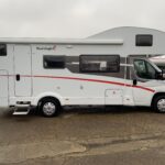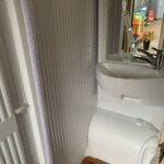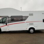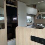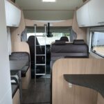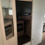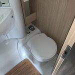 - The bathroom is equipped with a Thetford toilet, shower, and vanity washbasin