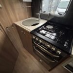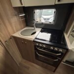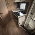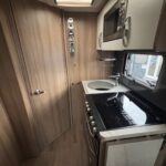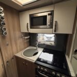 - The rear kitchen is spacious and well equipped with a 4 burner combi hob, Thetford oven and grill, sink, large fridge freezer and Microwave