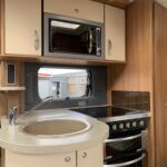 - The Kitchen is equipped with a sink, dual fuel hob, oven/grill, microwave, and large fridge freezer