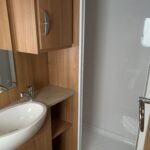 - The bathroom is equipped with a toilet, shower, and washbasin