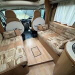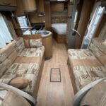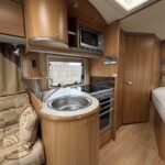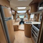 - The kitchen area is equipped with a Thetford XL fridge freezer, Oven and Grill, 4 burner combi hob, Sharp microwave and a sink