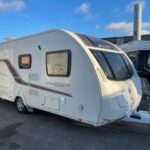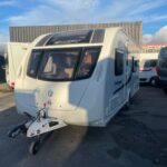- The kitchen is equipped with a Thetford fridge with freezer compartment, Thetford oven and grill, microwave, sink and hob