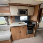- The kitchen is well equipped with a Thetford 4 burner combi hob, oven and grill, XL Dometic fridge freezer, and microwave.