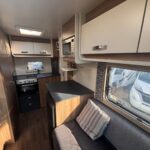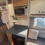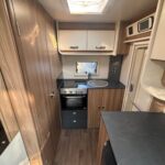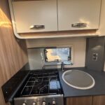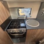 - There is a rear kitchen area which is well equipped with a 3 burner, Thetford oven and grill, Dometic fridge freezer, Microwave and sink