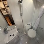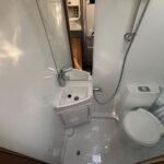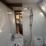 - The washroom is spacious and consists of a shower, Thetford cassette toilet and vanity washbasin