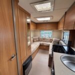 - The central kitchen is spacious and well equipped with a Thetford oven, grill and 3 burner hob, sink and fridge freezer