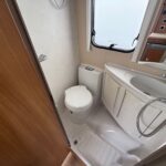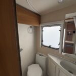 - The washroom is spacious with a shower, Thetford cassette toilet and vanity washbasin