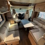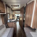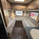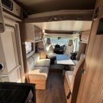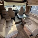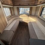 6 Berth. Rear U shaped lounge converts into a double bed. Drop down bed above front dinette. Front dinette converts into a double bed. Kitchen is well equipped with a 3 burner hob, Thetford oven, sink, microwave and a Dometic Fridge Freezer. Washroom with a shower, Thetford cassette toilet and a vanity washbasin.
