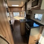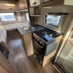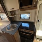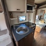 • Kitchen is well equipped with a 3 burner hob, Thetford oven, sink, microwave and a Dometic Fridge Freezer