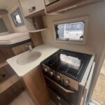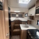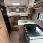 - The central kitchen is well equipped with a Thetford 3 burner hob, oven and grill, sink, microwave and fridge freezer