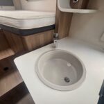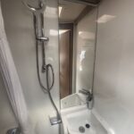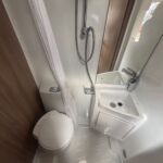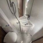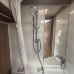 - The rear washroom is spacious with a shower, Thetford cassette toilet and vanity washbasin