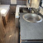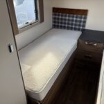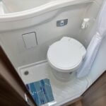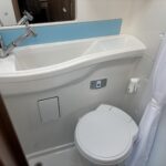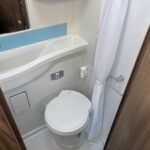 • The washroom is spacious and consists of a vanity, washbasin, shower and Thetford cassette toilet