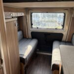 - There is an electric drop-down bed over the rear lounge, which sleeps 2