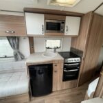 - Well-equipped kitchen with a 3 burner hob, Thetford oven, and grill, Thetford fridge with freezer compartment, microwave, and sink