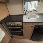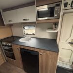 - The central kitchen is well equipped with a Thetford 3 burner hob oven and grill, sink, fridge freezer and Microwave