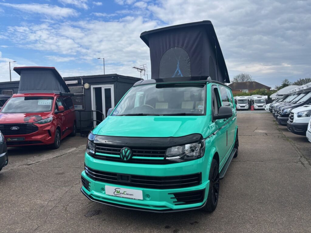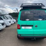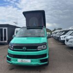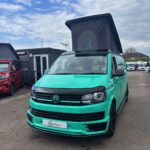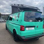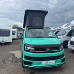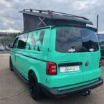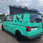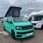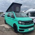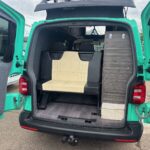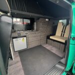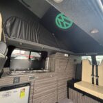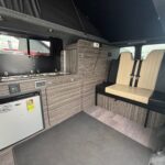This is a 4-berth campervan. The layout consists of a pop-top roof that sleeps 2, a pull-out rock-and-roll bed that sleeps 2, and a kitchen area with a sink, 2-burner gas hob, and fridge.