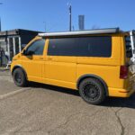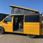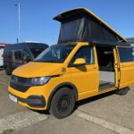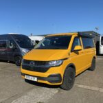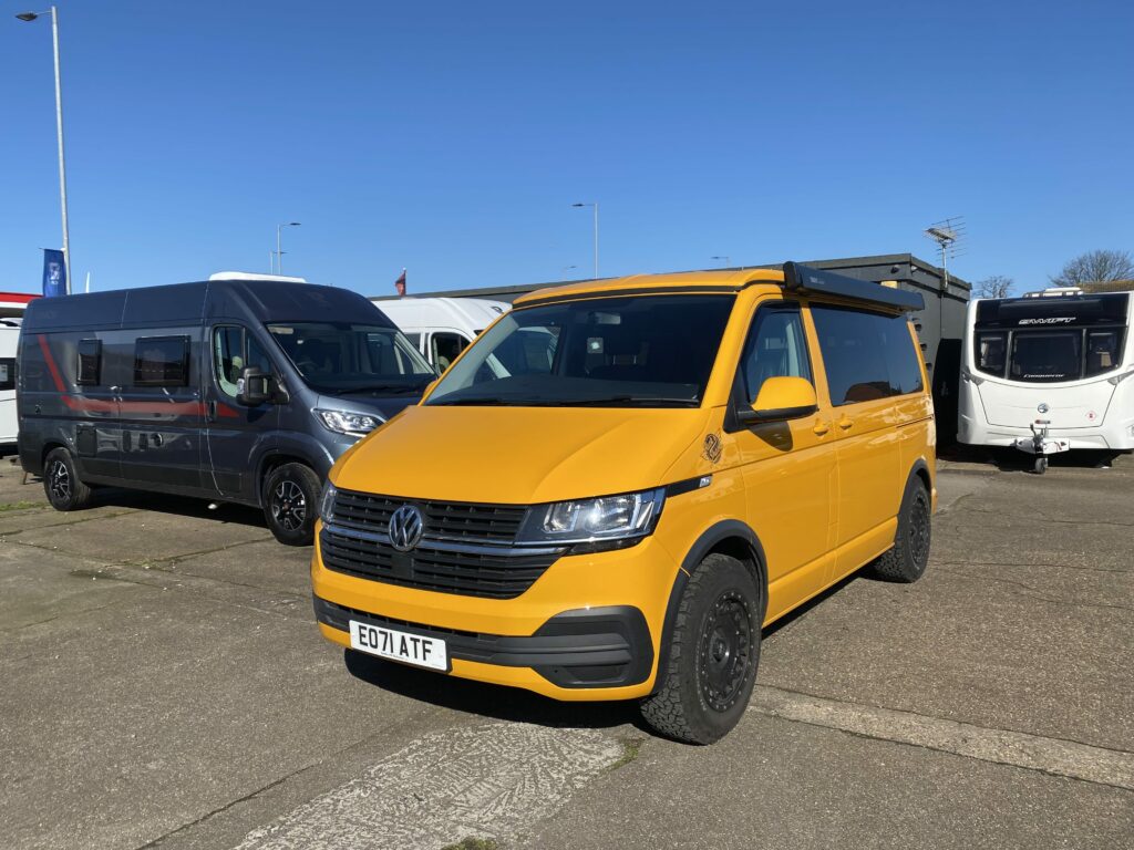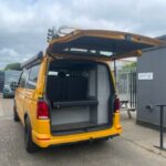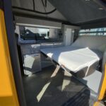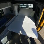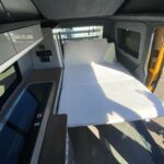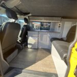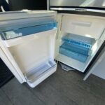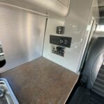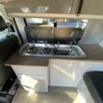 - Kitchen equipped with sink, 2 burner hob, and Dometic fridge freezer