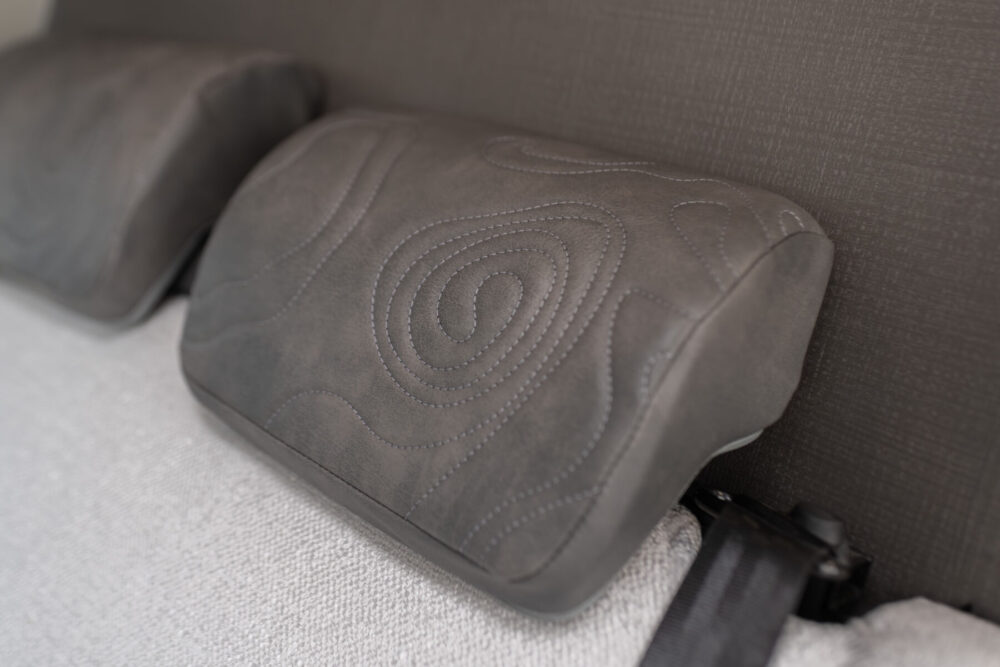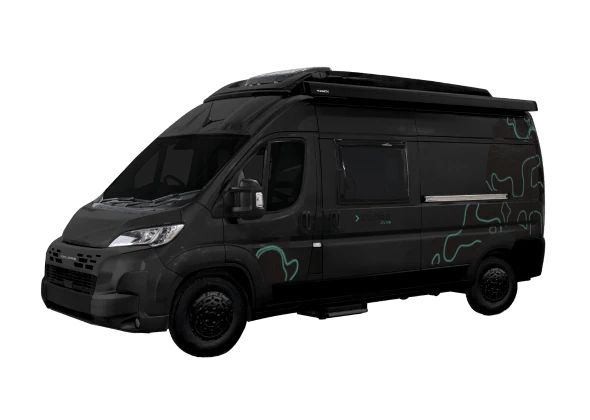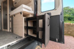 Raised rear bed – The raised rear bed can be stowed away or left in situ, providing a full-time rear garage space with access from inside the van when the bed is in its stowed position or from the rear doors when the bed is down. The bed is accessed via a step up from the front of the vehicle, also providing a perfect chill out space during the day.