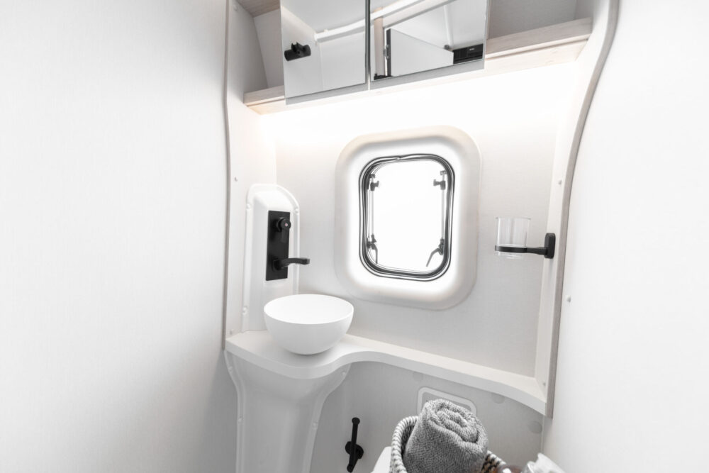 • Thetford toilet with auto-fill flush from on-board water tank